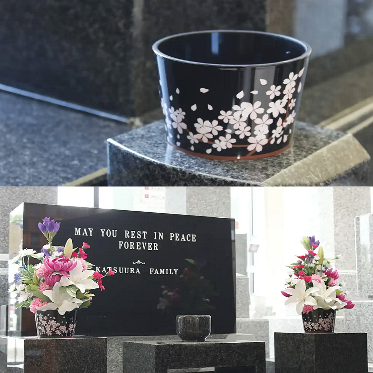 日本初の墓石用のデザイン花立です。