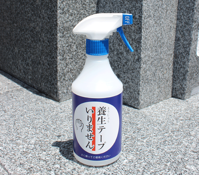 @目地にタイシンボンドVを充填後、充填後の目地に「養生テープいりません」を噴射します。